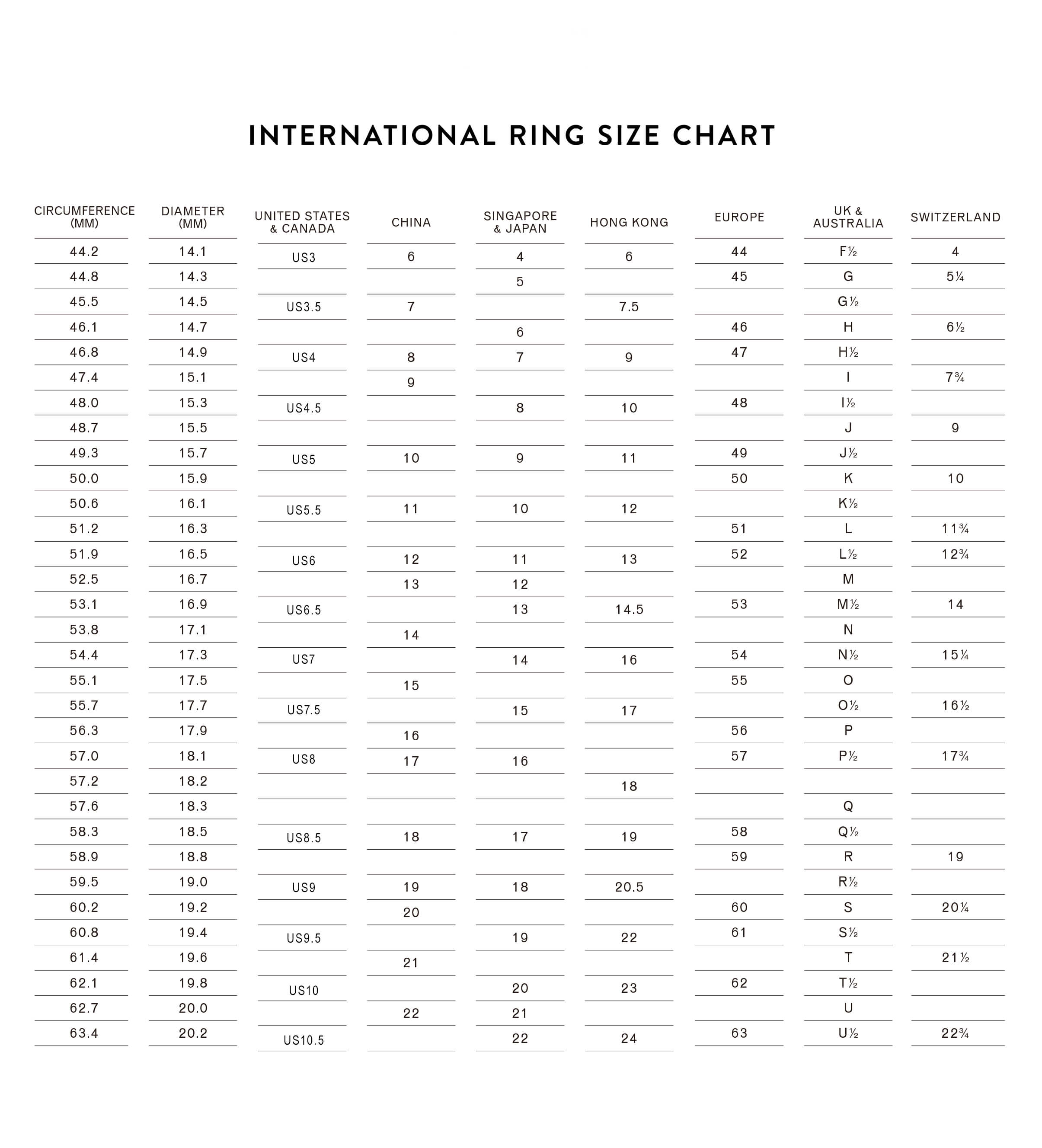 RING SIZE CHART