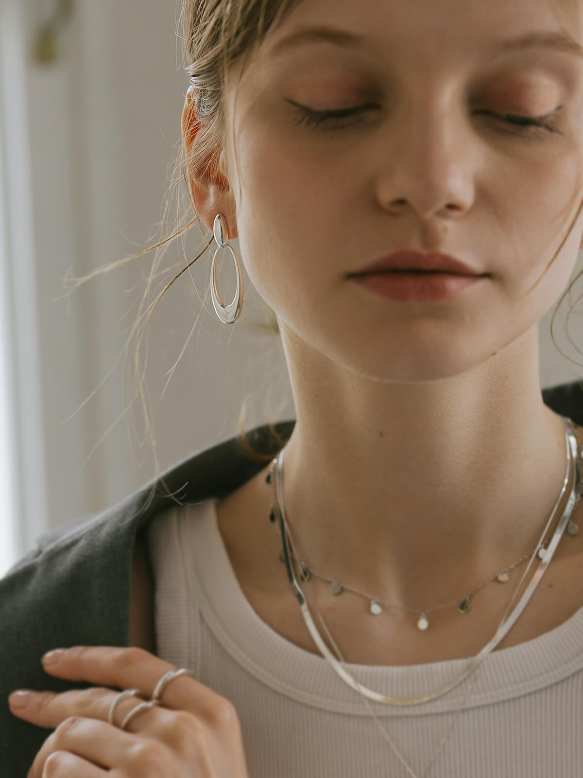 Silver925 Oval Swing Earrings | LYOMRA-PE